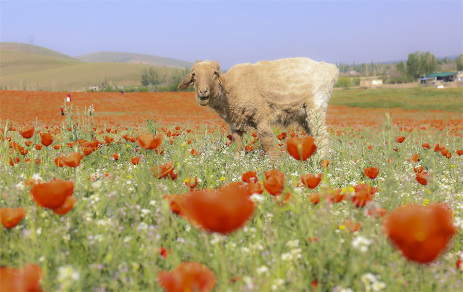 伊犁河谷深處天山紅花怒放。李金維 攝