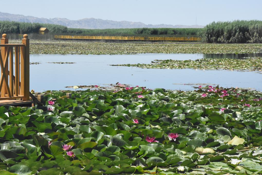 博斯騰湖水清花盛。新華社記者 於濤 攝
