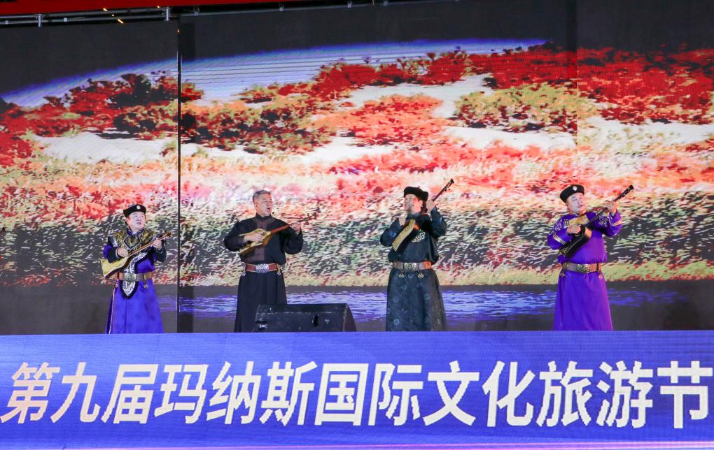 7月13日晚,新疆克州第九屆瑪納斯國際文化旅游節上,新疆博州歌舞團演員表演蒙古族英雄史詩《江格爾》。新華社記者 趙晨捷 攝