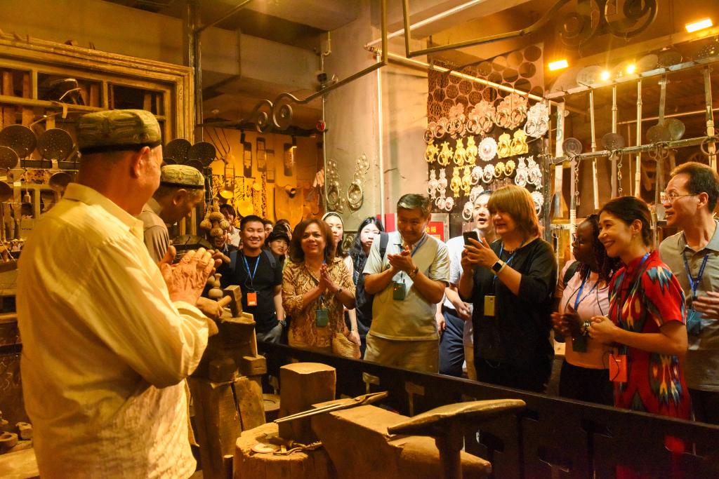 參訪團成員參觀新疆喀什古城,點讚手工藝人高超技藝(8月17日攝)。新華社記者 高晗 攝