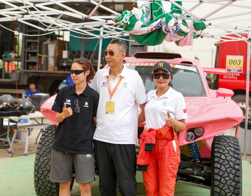 母女倆駕駛着一台粉色賽車,飛馳在高低起伏的金黃沙海中,顯得格外亮眼。在逐漸適應拉力賽節奏後,馬欣展現出不俗的潛力,幫助孫相燕在單賽段一度衝至前35名。賽程過半,孫相燕對女兒的表現非常滿意。