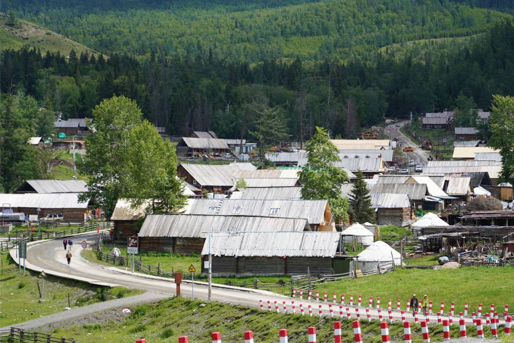 初夏午後,阿爾泰山蒼翠欲滴,牛羊成群。新疆哈巴河縣齊巴爾鎮吉林新村人頭攢動,來自五湖四海的游客走進電視劇《我的阿勒泰》拍攝地,尋找“詩與遠方”。