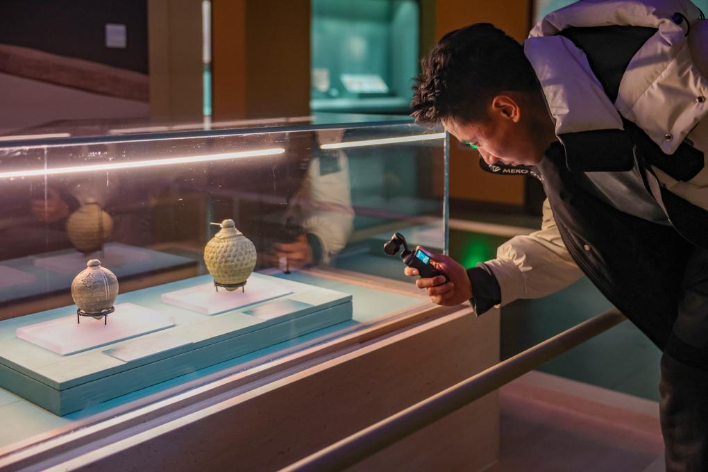12月6日,參觀者在“古波斯的榮耀——伊朗文物精華展”拍攝弗高瓶。新華社記者 陳朔 攝