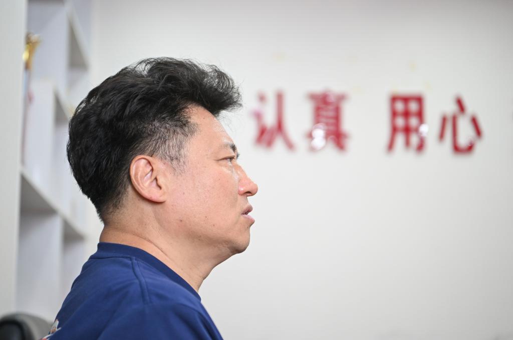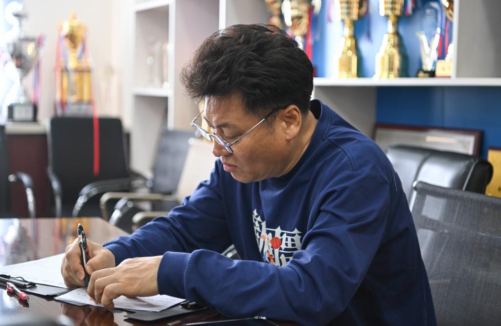 姜正秀在分析比賽錄像時做筆記(2025年3月11日攝)。與初到烏魯木齊的迷茫相比