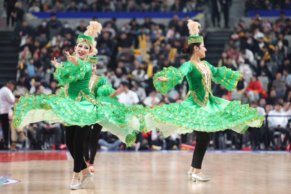 舞蹈演員在比賽中場休息時進行表演(2023年12月15日攝)。天山南北
