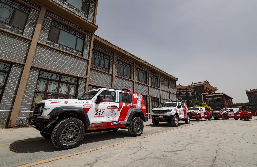 5月20日,長城坦克Hi4車隊的兩輛新能源組賽車(左一、左二)在發車儀式上。