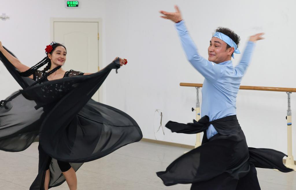 5月24日,熱合木土拉·阿馬努拉在北京海淀區一所舞蹈培訓中心教授新疆民族舞蹈。