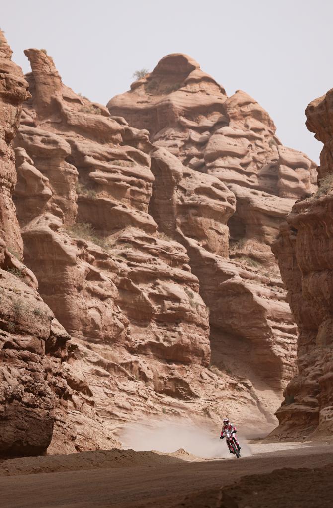 5月20日,紅駝機車廠隊一隊捷克籍車手馬汀在排位賽中。當日,2025中國環塔國際拉力賽暨中國汽車越野拉力錦標賽新疆分站賽在新疆阿克蘇市發車。據介紹,本屆賽事加大對新能源賽車的支持和探索力度,首次設置新能源組。賽事總行駛里程約5200公里,其中包含總計約2350公里的10個特殊賽段,途經新疆阿克蘇地區、和田地區、喀什地區等地,匯集沙漠、戈壁、雅丹等多種地形地貌。新華社記者 胡虎虎 攝