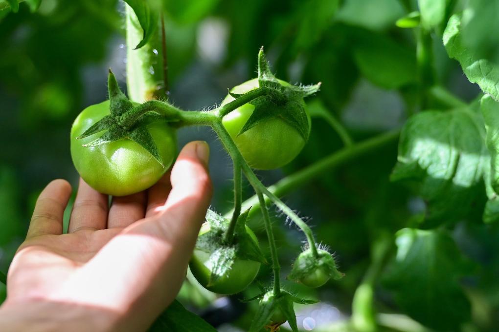 2024年3月24日,在新疆阿克蘇市阿依庫勒鎮蔬菜基地,種植戶查看西紅柿的生長情況。新華社記者 丁磊 攝