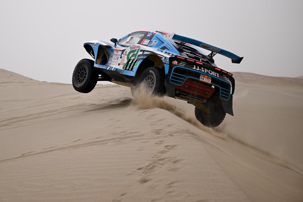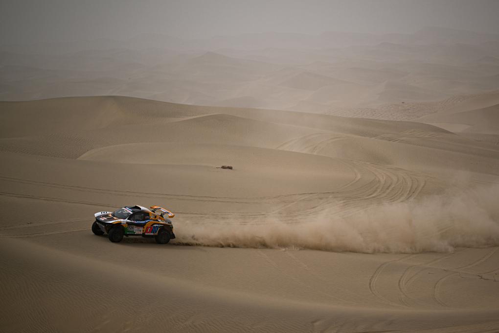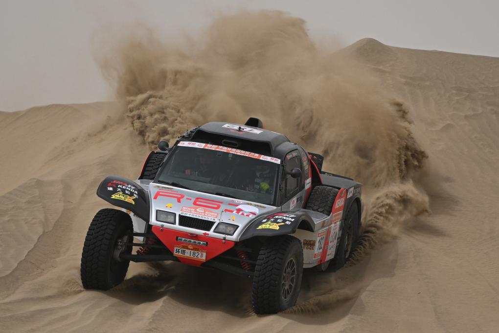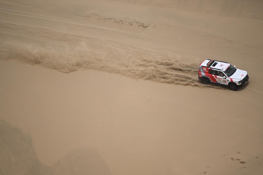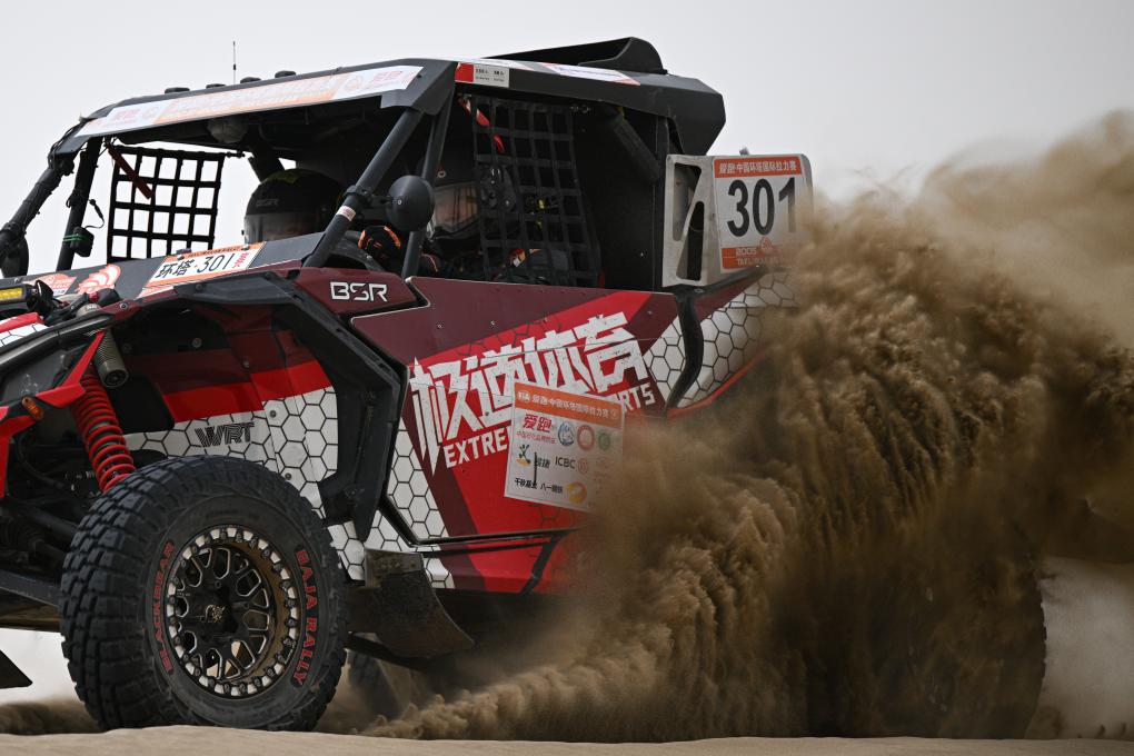 當日,2025中國環塔國際拉力賽第七賽段在新疆喀什地區葉城縣進行。該賽段長82公里,以“沙漠+戈壁”的複合地形為特色,是今年最新啟用的賽段。新華社記者 辛悅衛 攝