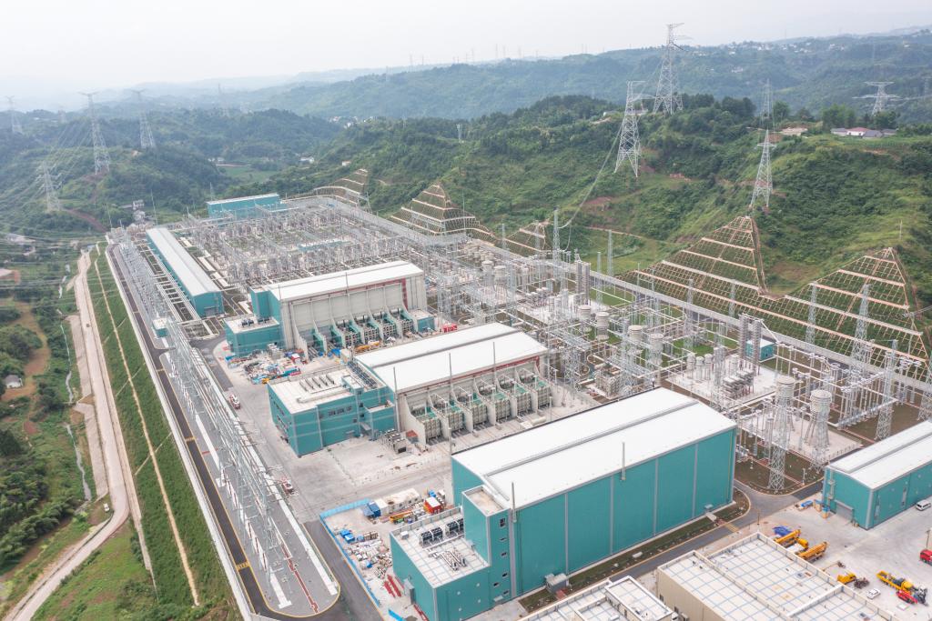這是6月10日拍攝的哈密至重慶±800千伏特高壓直流輸電工程渝北換流站(無人機照片)。
