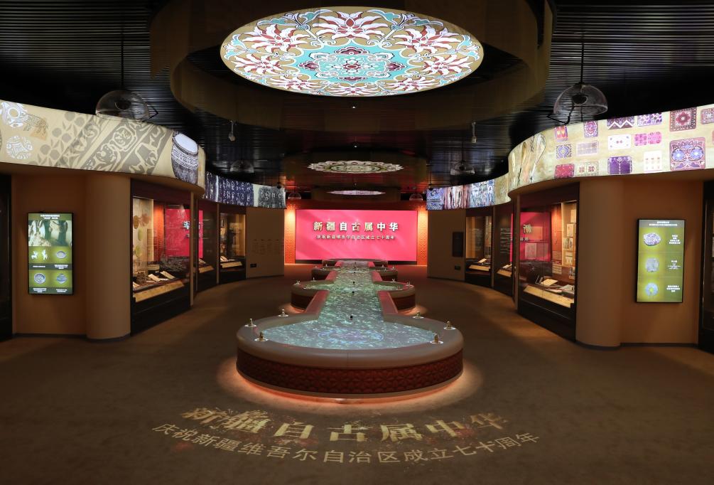 “西藏專展”集中展示近70件明清宮廷傢具及50件中央頒賜聖旨印章,以“天下一統”“四海一家”等6大單元,實證西藏與內地血脈相連、不可分割的歷史脈絡。“新疆專展”以“新疆自古屬中華”為核心,設“明月出天山”“絲路匯八方”等5大單元,精選200件文物古籍、193幅圖片及9部視頻,系統呈現新疆與中原千年交融史。