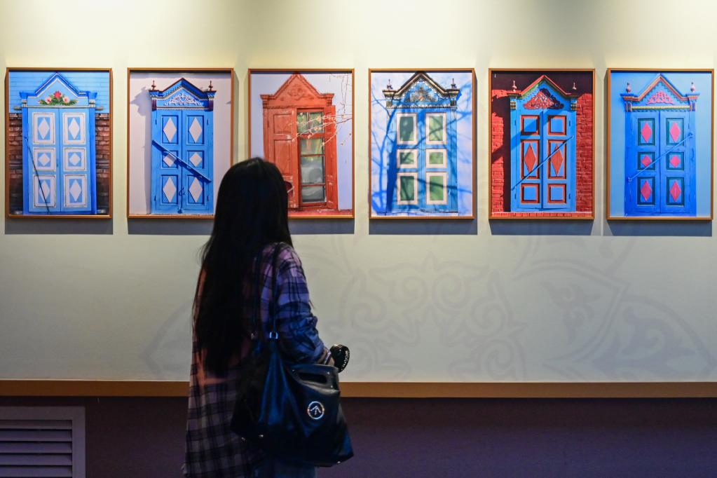 2025年7月24日,游客在新疆伊犁哈薩克自治州伊寧市伊犁老城喀讚其文化旅游區石榴花展覽館參觀。丁磊 攝