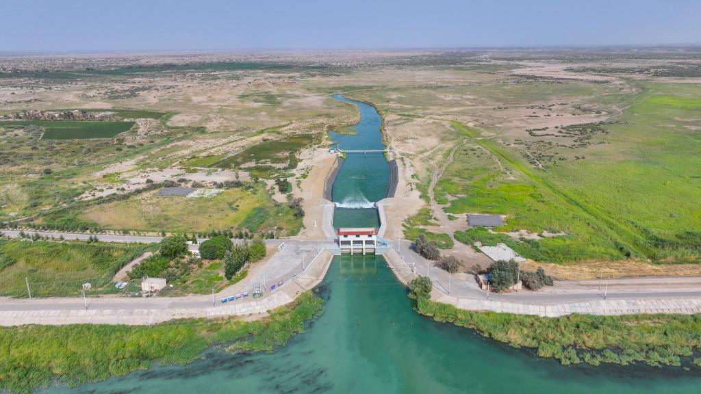 8月5日,新疆塔裏木河在尉犁縣境內大西海子水庫啟動第26次生態輸水第二階段輸水工作。