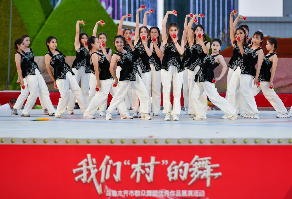 烏魯木齊市達坂城區舞蹈隊在“我們‘村’的舞”烏魯木齊市群眾舞蹈展演活動上表演舞蹈(7月28日攝)。