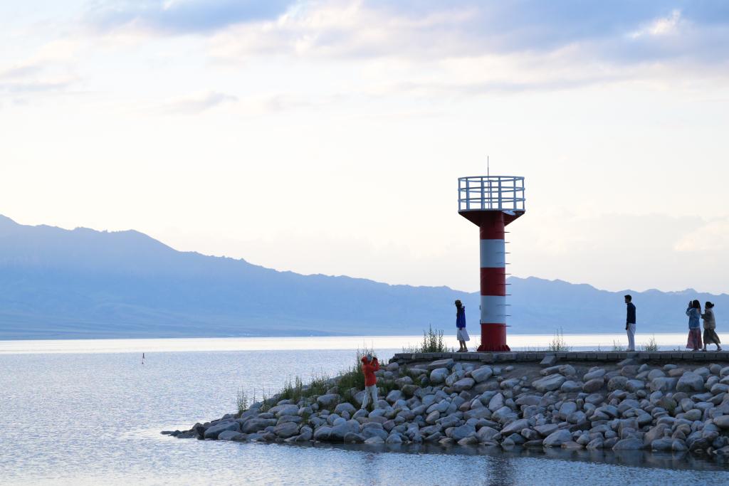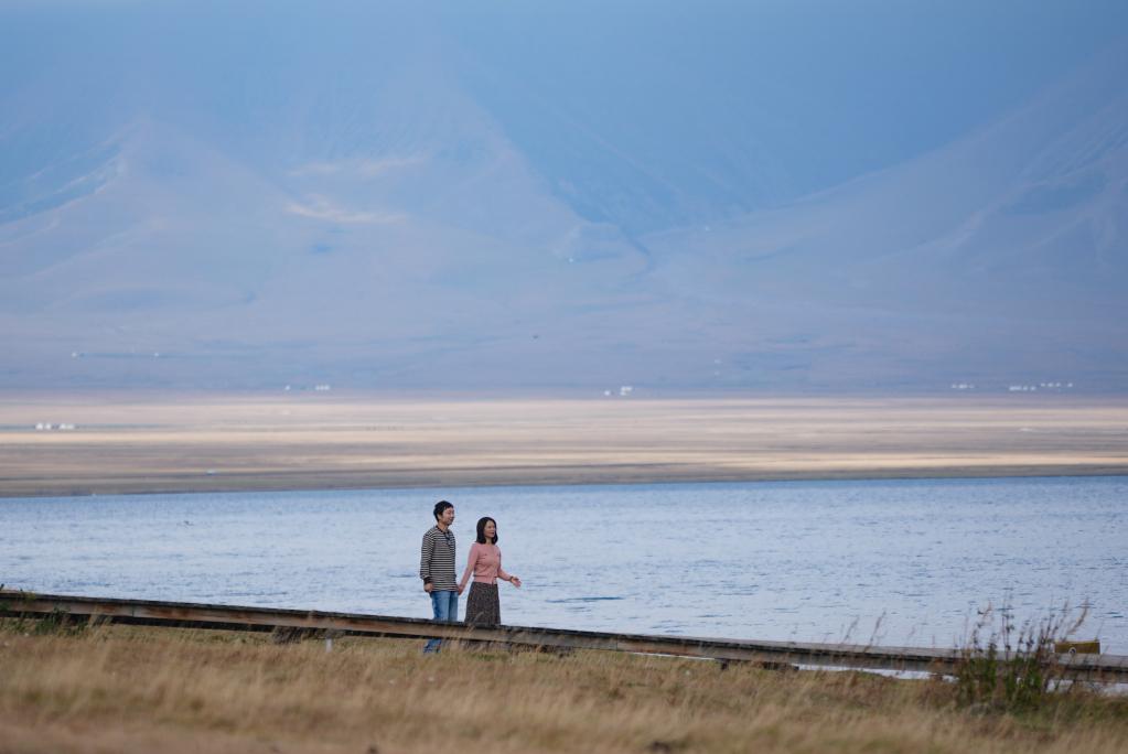 9月10日,游客在賽裏木湖畔游玩。新華社記者 張浩波 攝