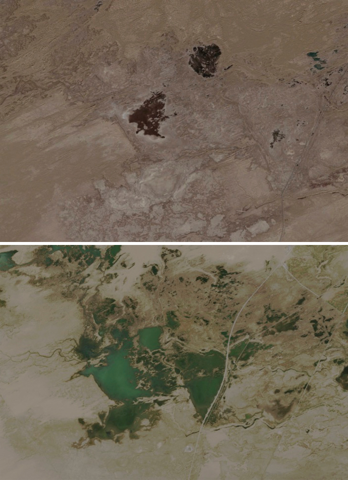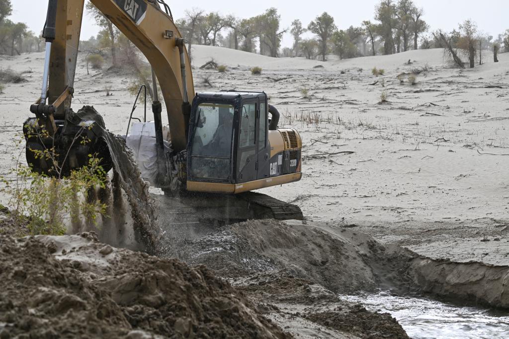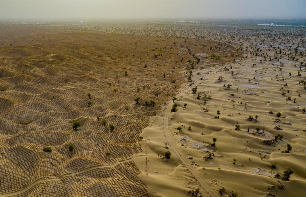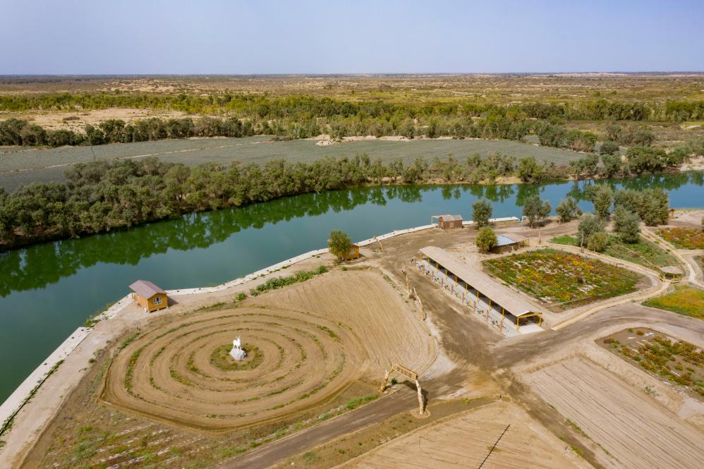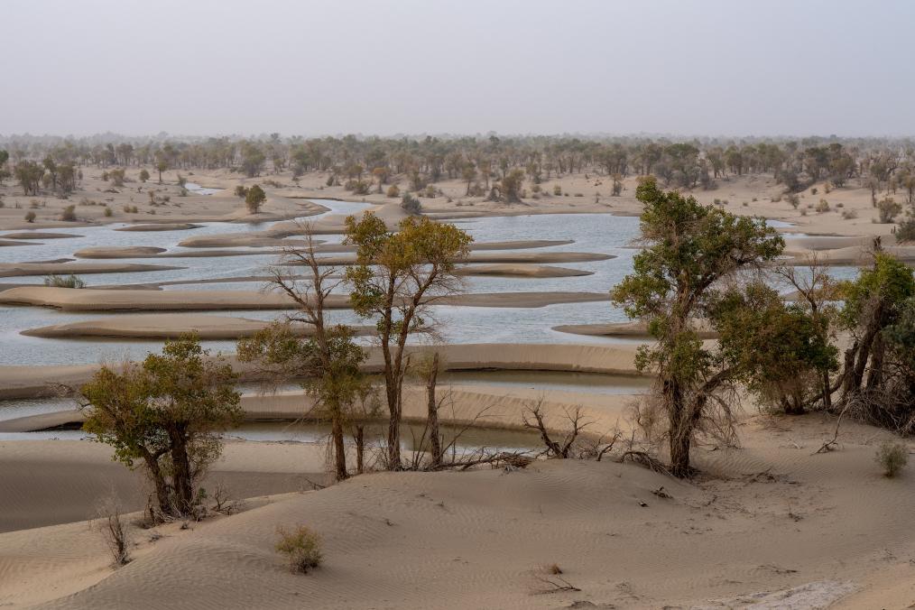塔裏木河沿塔克拉瑪幹沙漠北緣蜿蜒