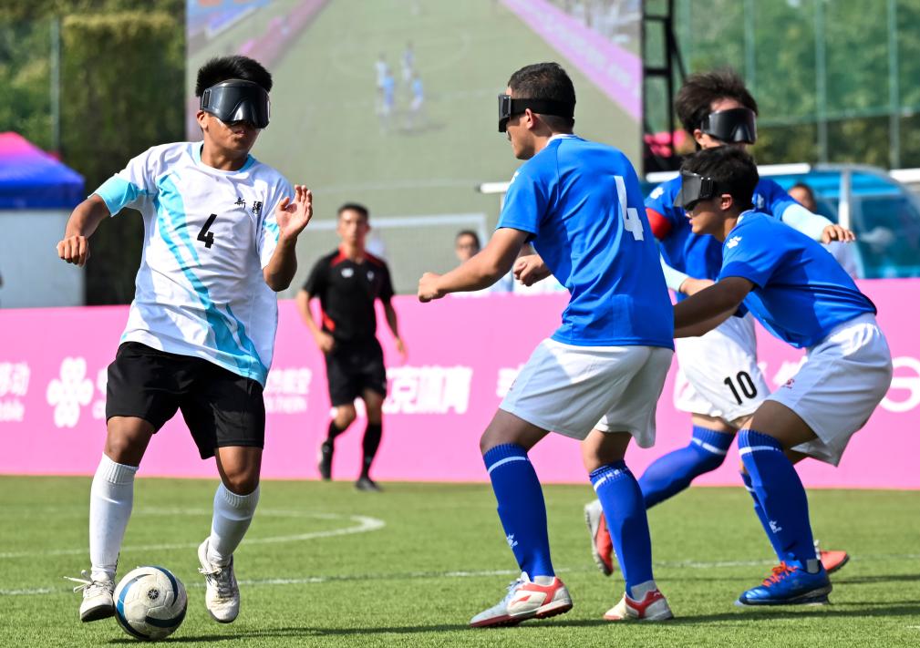 當日,在廣州舉行的全國第十二屆殘疾人運動會暨第九屆特殊奧林匹克運動會盲人足球項目男子組小組賽中,新疆隊2比0戰勝河南隊。