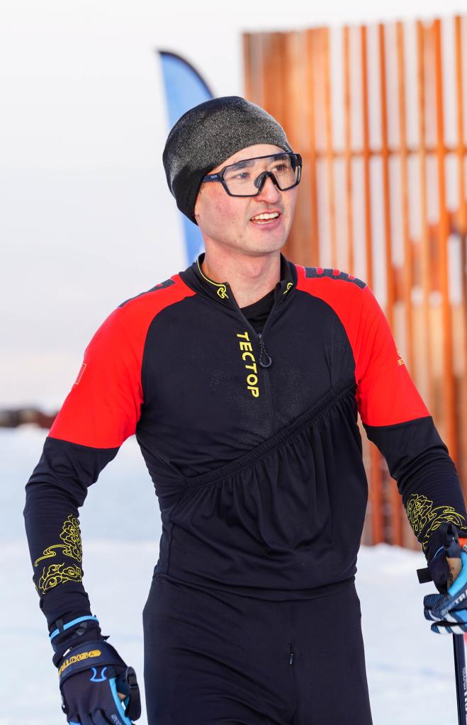 買依爾別克·赤合斯在2025年全國滑雪登山錦標賽比賽後(2025年12月15日攝)。