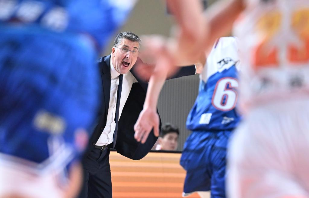 1月11日,新疆伊力特隊主教練格蘭(中)在場邊指導球員戰術。新華社發(徐銳 攝)