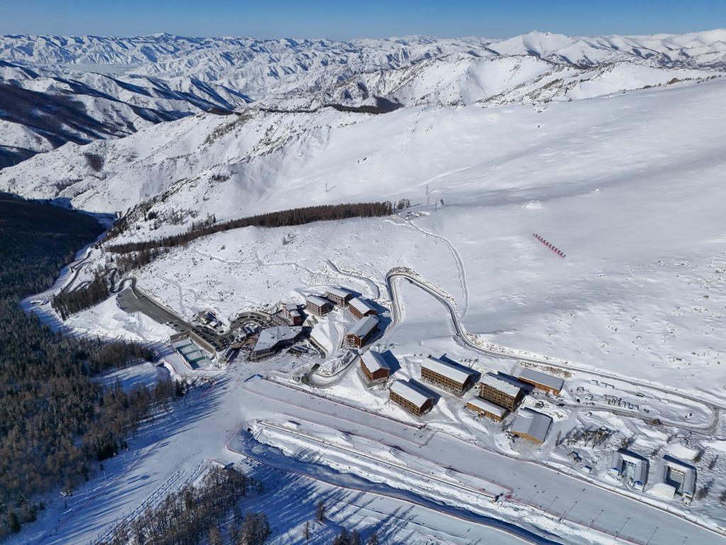 這是1月17日拍攝的新疆阿勒泰可可托海國際滑雪度假區(無人機照片)。新華社記者 胡虎虎 攝