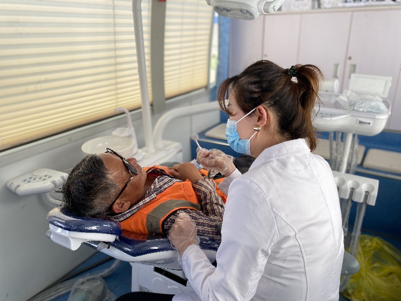 醫護人員為一線工人進行基礎口腔檢查並解答相關口腔問題,還開展了口腔健康科普,發放了口腔護牙禮包和健康宣傳手冊。此次活動共為60余名勞務工作者提供義診服務。