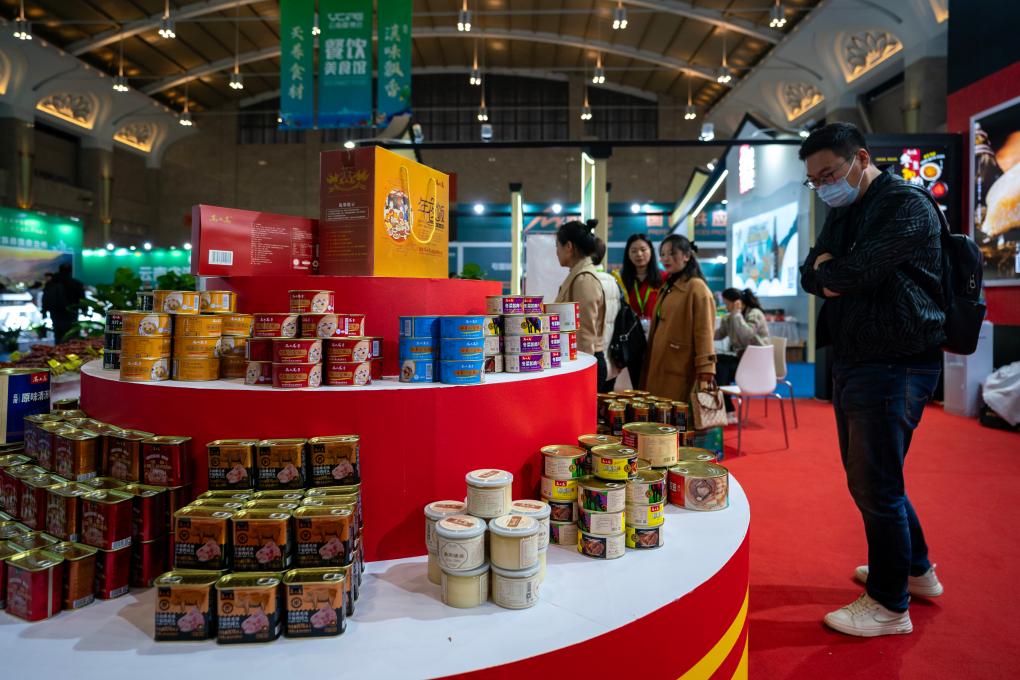 10月13日,參觀者在雲南國際餐飲美食暨預製菜産業博覽會上參觀。