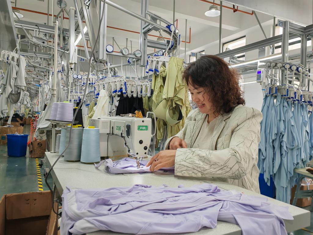 5月13日,雲南省昭通市鎮雄縣居民在當地服裝廠工作。(新華社記者 林碧鋒 攝)