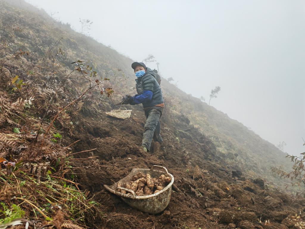 1月4日,雲南省昭通市彝良縣蕎山鎮的村民在采收天麻。(新華社記者 林碧鋒 攝)