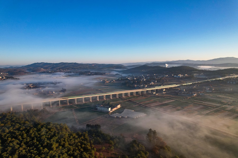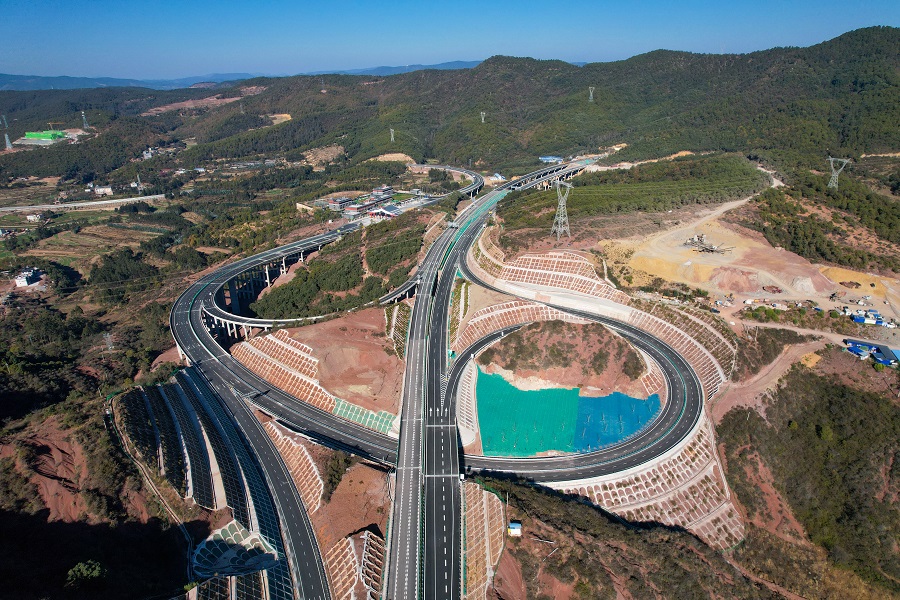 楚雄市東南繞城高速公路楚雄南互通(12月29日攝)。