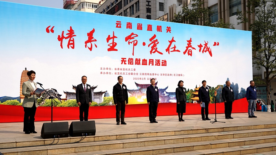 日前,為有效緩解昆明地區血液緊張狀況,由雲南省委省直機關工作委員會主辦,雲南省省直機關工會聯合會,雲南昆明血液中心,昆明市五華區人民政府,昆明市五華區衞生健康局承辦的無償獻血月活動集中啟動儀式在昆明市南屏街小廣場舉行。