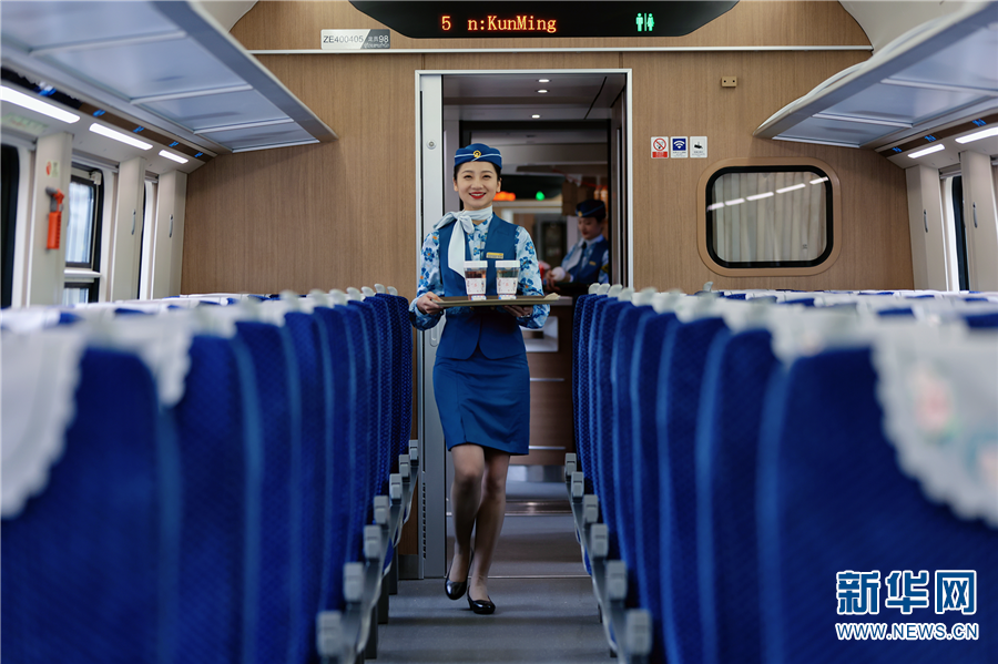 着“絲路花語”主題制服的列車乘務員。徐章位 攝