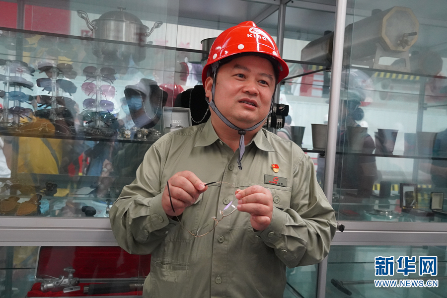 雲南鈦業相關負責人介紹用鈦製成的産品(8月14日攝)。新華網 柴靜 攝