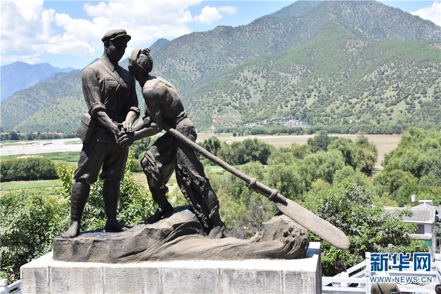 紅軍長征過麗江紀念館內的“金沙水暖”青銅雕塑(2021年8月2日攝)。新華網 和潤仙 攝