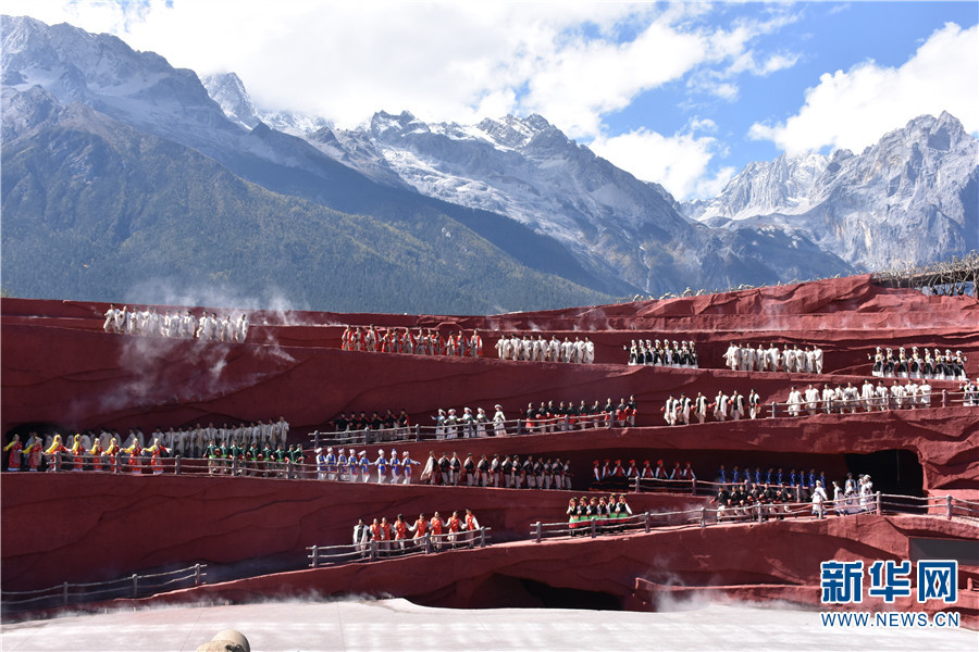 《印象·麗江》實景演出(2021年10月29日攝)。新華網 和潤仙 攝