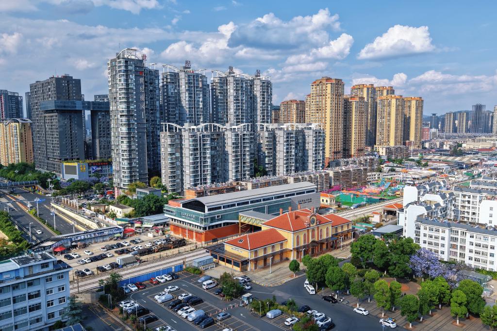 從高空鳥瞰,博物館神似一個“工”字形的鐵路鋼軌剖面,象徵歷史與現實的交融。總建築面積超8000平方米的博物館內,收藏和展示米軌、寸軌、準軌鐵路的機車、工具及文獻等,其中既有滇越鐵路標誌性工程“人字橋”的模型,也有被稱為“鎮館之寶”的國家一級文物“米其林”內燃動車組等。