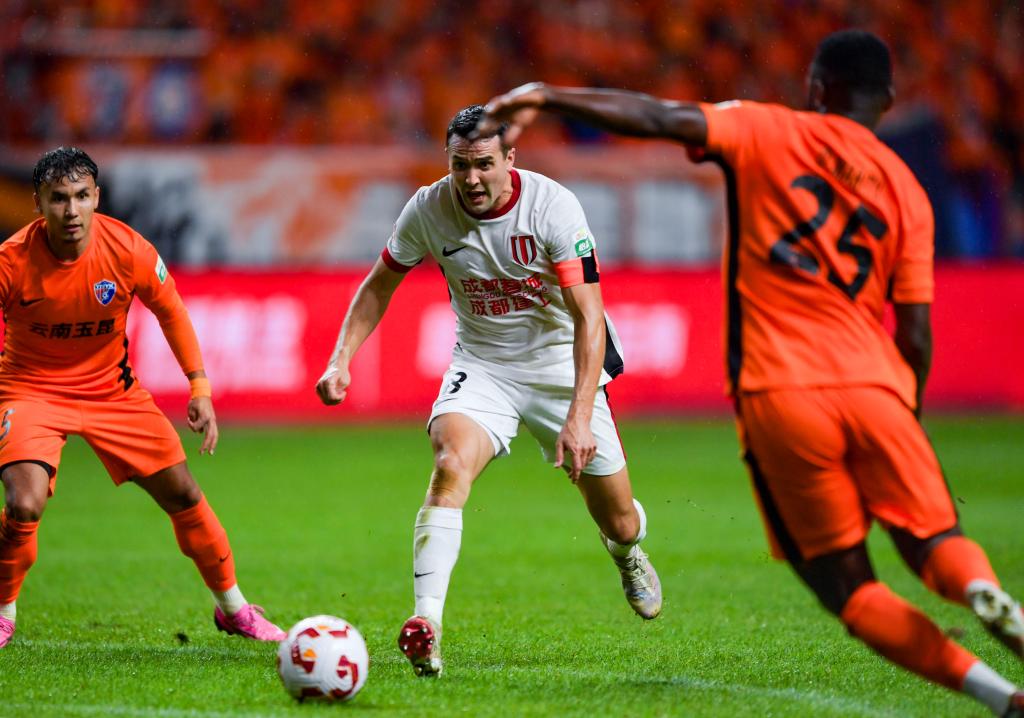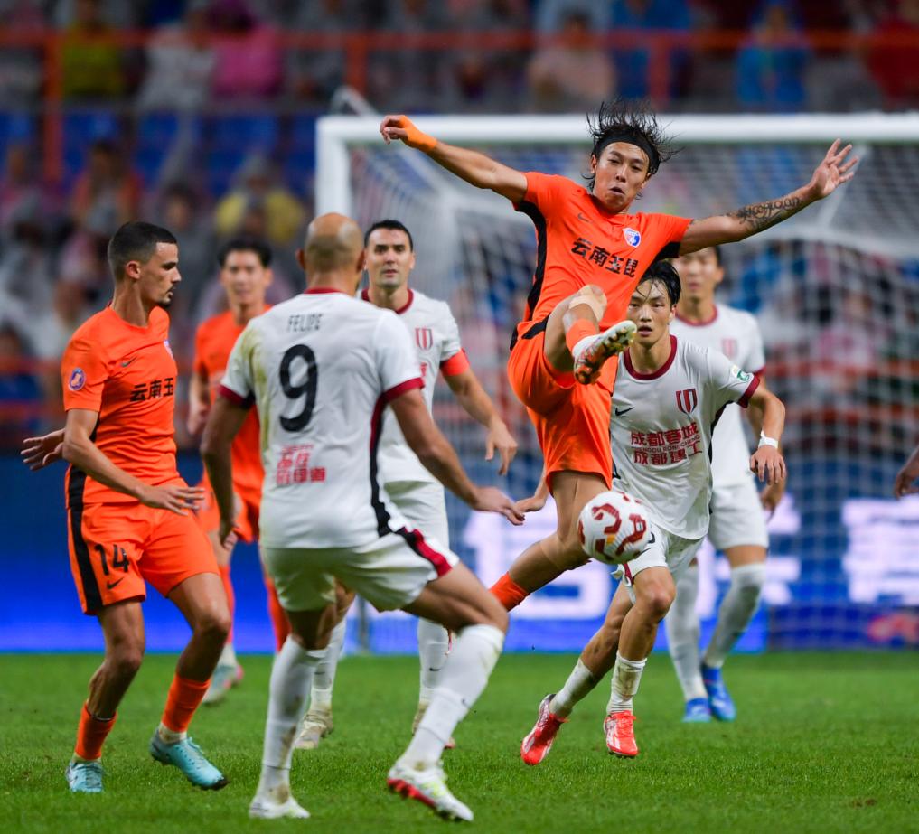 新華社昆明8月23日電(記者 岳冉冉)在23日進行的2025賽季中國足球超級聯賽第22輪比賽中,雲南玉昆隊主場1:5慘敗於成都蓉城隊,連續兩場大比分落敗。
