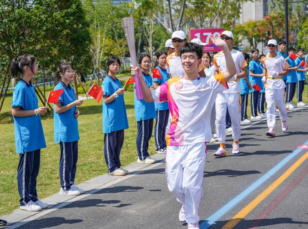 9月19日,杭州亞運會火炬傳遞衢州站起跑儀式現場。新華社記者 孫非 攝