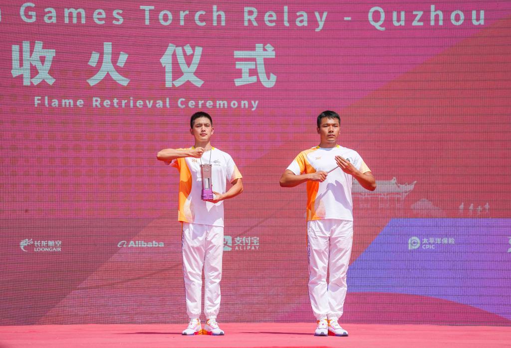 9月19日,杭州亞運會火炬傳遞衢州站收火儀式現場。新華社記者 孫非 攝