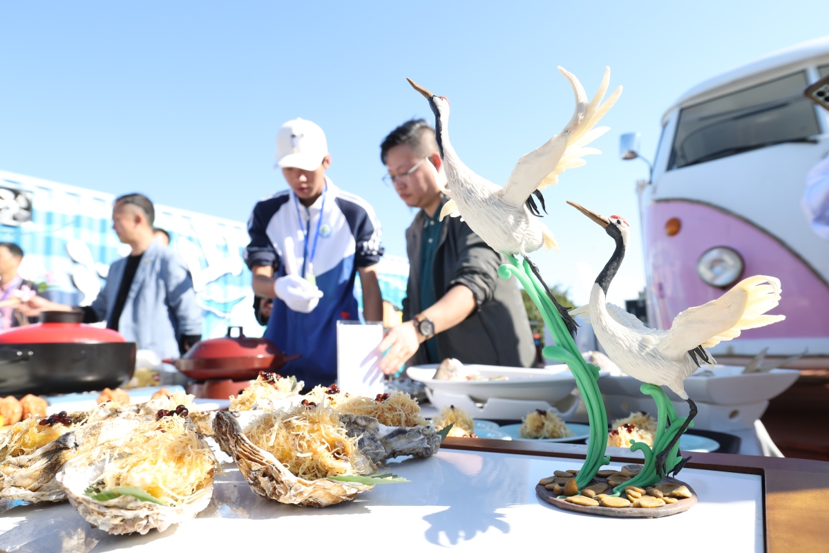 來自全省的42位青年廚師齊聚半邊山,在藍天碧海間搭起廚房,比拼海鮮創新製作。鍋鏟揮舞間,文火沸水裏,一道道精美的海鮮“硬菜”上桌,演繹出各位廚師的精湛廚藝與巧妙構思。