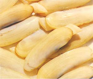 蟶子,學名縊蟶,屬軟體動物,係,真瓣鰓綱,真瓣鰓目、竹蟶科。貝殼脆而薄,呈長扁方型,自殼頂腹緣,有一道斜行的凹溝,故名縊蟶。
