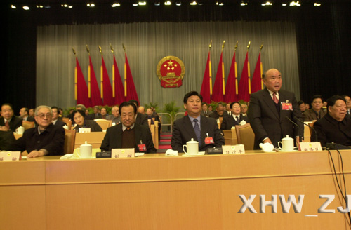 代表們在認真聽取習近平代省長的政府工作報告。(左為釋修祥 右為王鑫炎)