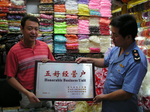 2006年8月28日,義烏掛牌成立保護知識産權舉報投訴服務中心,加強保護知識産權宣傳教育,被國家工商行政管理總局評為重合同守信用單位。……
