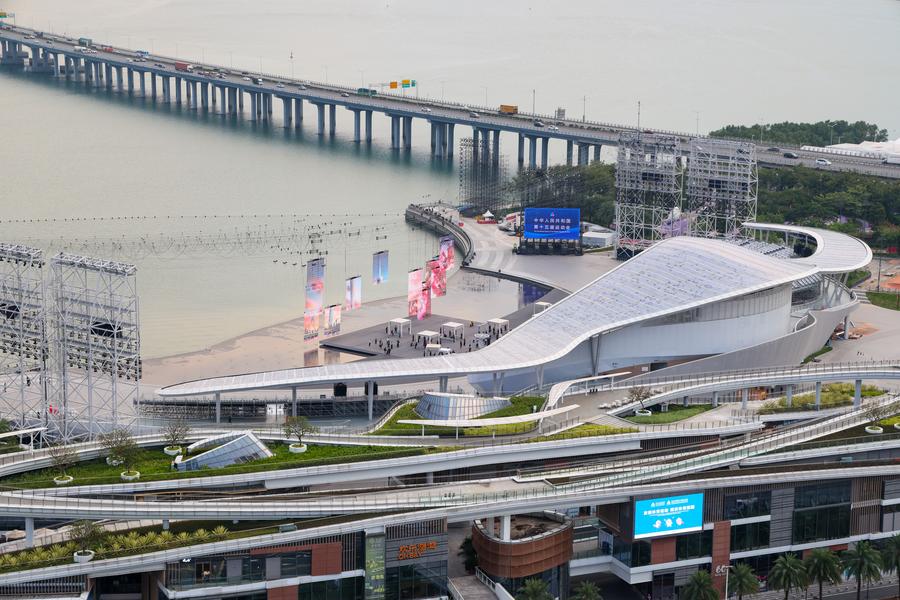 第15回全國運動會でテニスの會場となる広東省珠海市の珠海橫琴國際テニスセンター。(10月18日、ドローンから、珠海=新華社記者/鄧華)