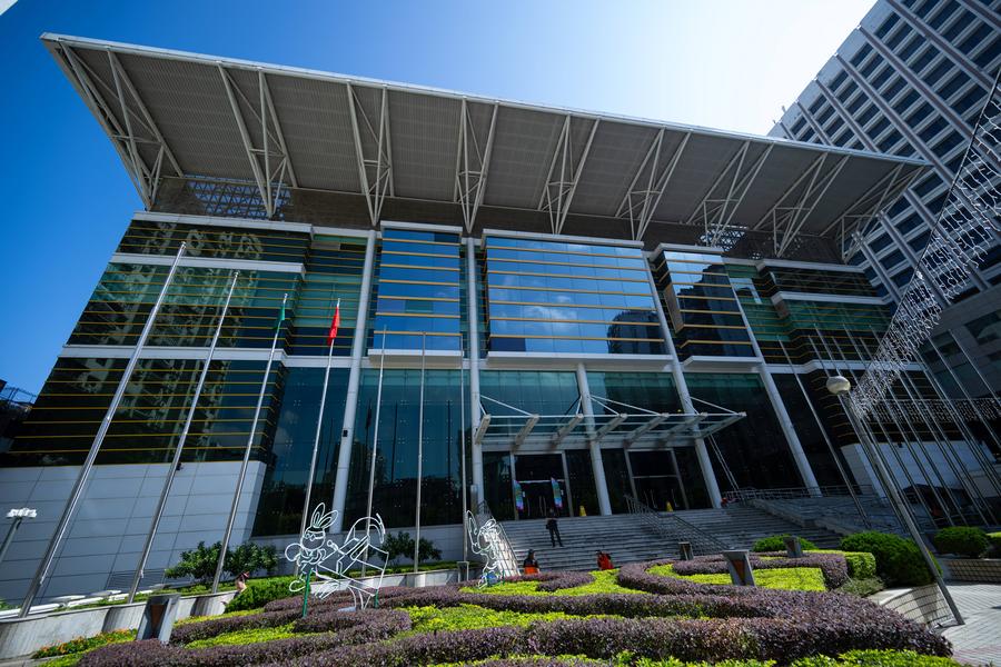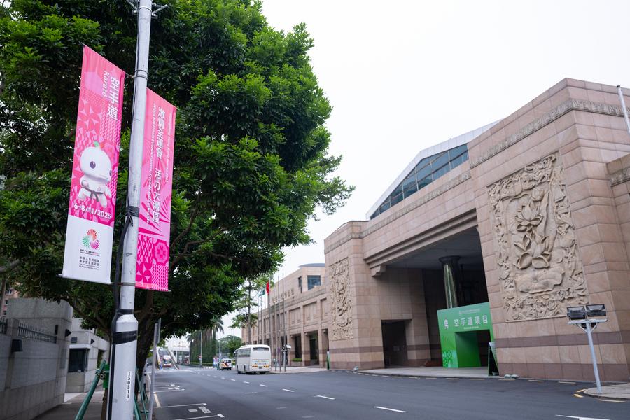 3日、第15回全國運動會で空手の會場となるマカオ総蕓館(マカオフォーラム)。(マカオ=新華社配信/張金加)
