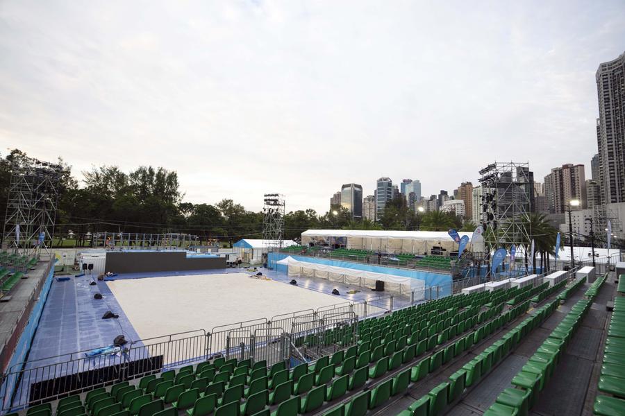 10月25日、第15回全國運動會でビーチバレーの會場となる香港ビクトリアパーク。(香港=新華社配信/呂小煒)
