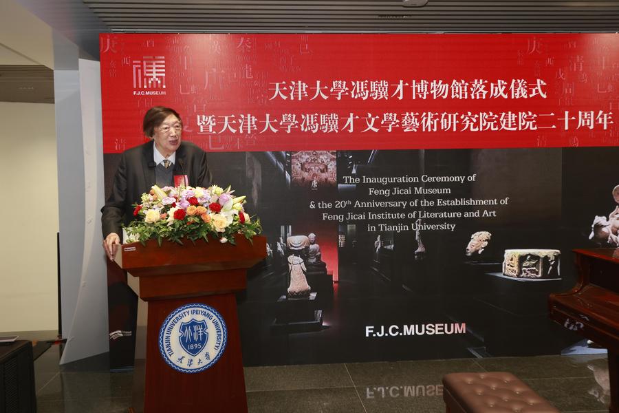 22日、馮驥才博物館の落成式であいさつする馮驥才さん。(天津=新華社配信)