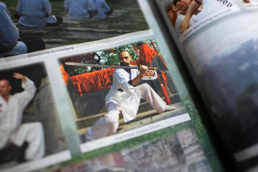 ヒメットさんが掲載された武術雑誌。(11月13日撮影、ベルリン=新華社記者/張豪夫)