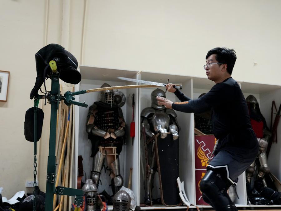 中國四川省出身で上海市在住の佘予然(しゃ・よぜん)さんは、大學時代に西洋剣術(HEMA)と出合い、ドイツ古典剣術から研究を始め、中世の武器や技に精通した。15年、仲間と共に上海歴史武術クラブを設立。コースにはヨーロッパ長剣、軍刀、剣盾などがあり、現在、會員は200人余り、半數以上がドイツ剣術を學んでいる。