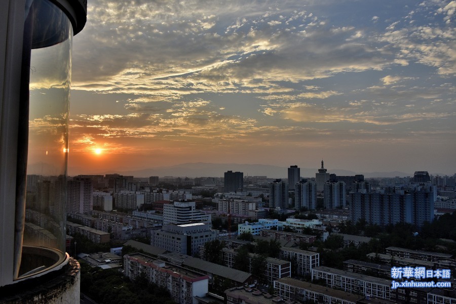 ビルの26階から見た真夏にある北京の空の美しい夕焼け